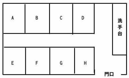 你要去一个布局如下图的公共卫生间,里面没有一个人,那么凭直觉你会选择去哪个小间方便呢?(请看图作答)